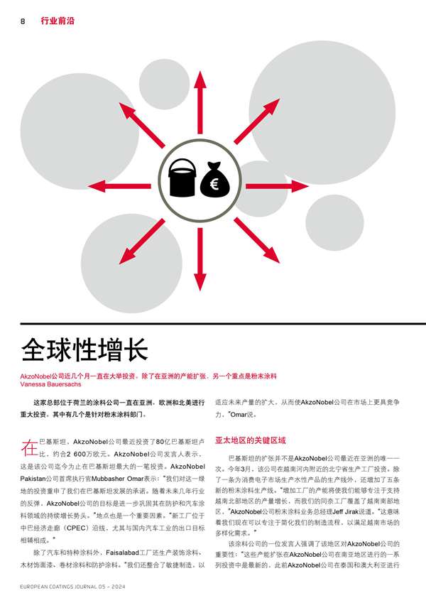 AkzoNobel公司在亞洲、歐洲和北美的投資