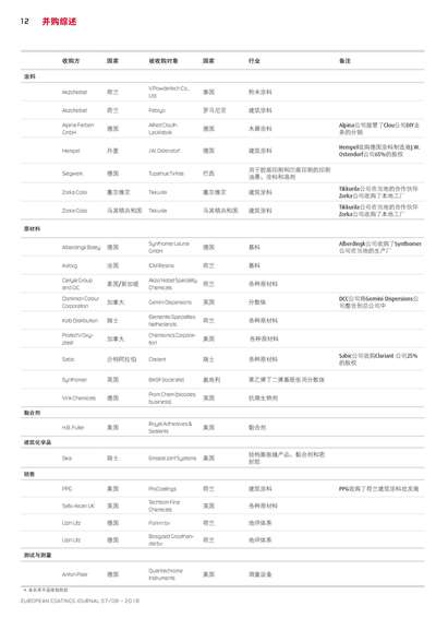 涂料行業收購和兼并活動概覽