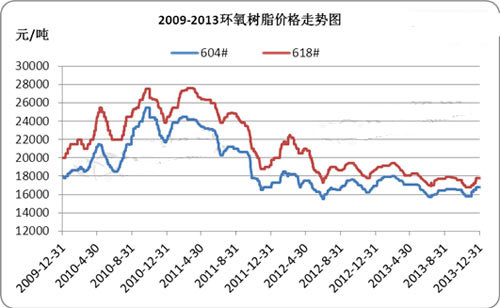2013年中國環氧樹脂價格整體呈現下跌走勢。