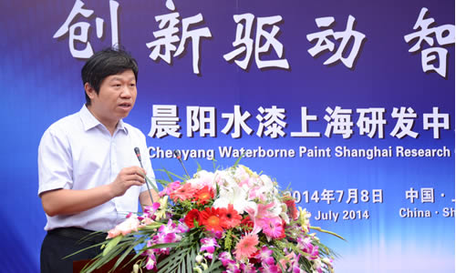 晨陽(yáng)集團(tuán)副總裁花東栓在晨陽(yáng)水漆上海研發(fā)中心揭牌儀式上講話