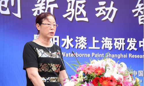 中國(guó)涂料工業(yè)協(xié)會(huì)會(huì)長(zhǎng)孫蓮英在晨陽(yáng)水漆上海研發(fā)中心揭牌儀式上致辭