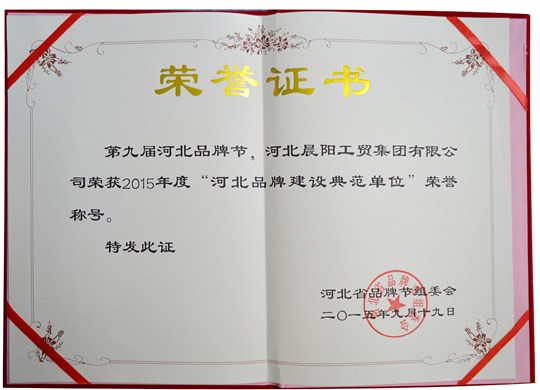 9月19日,以“創新發展·合作共贏”為主題的2015第九屆河北品牌節活動在石家莊河北會堂舉行。會上對河北品牌建設領域涌現出的具有代表性和影響力的典范企業進行了表彰,晨陽水漆榮獲“河北品牌建設典范單位”稱號。
