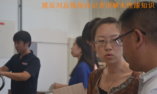 記者專訪環節,中國環保產業協會廢氣凈化委員會欒志強教授、中國涂料工業協會譚春雷秘書長、曲美家具董事長趙瑞海先生、展辰涂料劉建平總經理一同接受了記者們的專業提問。其中,展辰涂料劉建平總經理對應用在曲美家具生產中的展辰水性漆產品性能、安全節能、排放環保等方面,向現場記者們作了專業性的闡述,讓大家對水性漆材料、水性漆在家具行業的應用前景有了更深入的了解和認識。