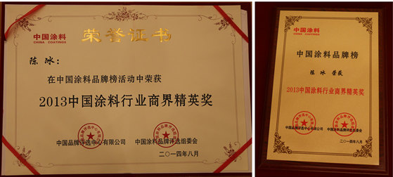 展辰董事長陳冰先生榮獲“2013中國涂料行業商界精英獎”