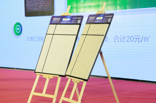 呼應(yīng)會議的核心主旨,金展涂料鴻針對2019年的市場情況,在會上隆重推出了全新砂包砂大理石漆,屬行業(yè)首推。金展鴻大理石漆為CCTV央視展播品牌,單平米造價低,效果可媲美天然原石,莊重氣派,施工非常方便,可噴涂可批刮,特別適合工裝,大工地使用,產(chǎn)品管用長達五十年。會議還特別介紹了金展鴻新材料集團旗下澳芙高端生態(tài)藝術(shù)壁材,在量身定制、協(xié)助施工、施工培訓(xùn)專業(yè)一條龍服務(wù)的護航下,其能使居室空間完美展現(xiàn)意大利藝術(shù)與新時代個性潮流風(fēng)格。