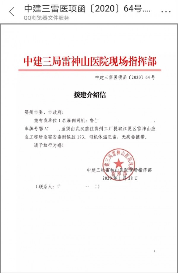 在獲悉武漢雷神山醫(yī)院開工后,集泰股份團(tuán)隊積極配合總包方中建三局及施工方武漢思可達(dá)工作,1月28日接到雷神山項目部所需建筑密封膠產(chǎn)品型號和數(shù)量后,集泰股份武漢團(tuán)隊反饋給高層,面對武漢新型肺炎疫情,集泰股份高層高度重視,心系疫區(qū),當(dāng)即決定為雷神山項目無償捐贈所需建筑密封膠材料。