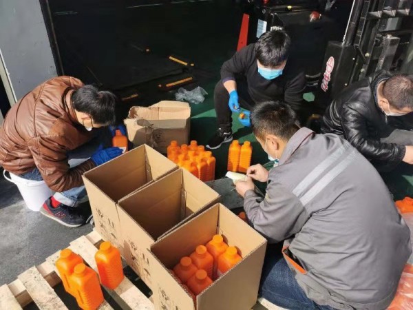 抗擊疫情期間,浙江納美新材料股份公司黨支部組織安吉黨員將公司實驗室?guī)齑娴木凭♂尦?5%的消毒酒精,積極支援機(jī)關(guān)單位消毒抗疫。
