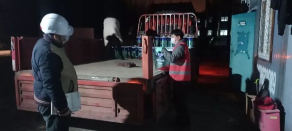1月26日早上,龍牌漆首批樣板間材料送達工地現場