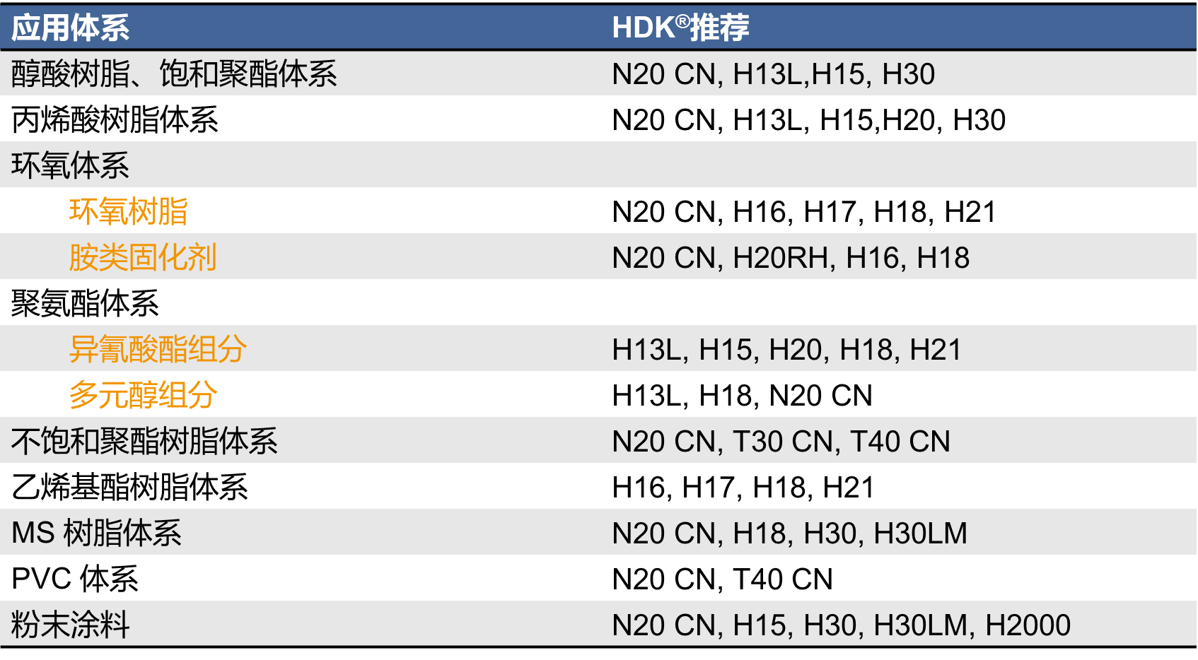 一般隨著涂料體系的極性增強,需要選擇疏水化程度更高的HDK®以實現較好的流變效果。