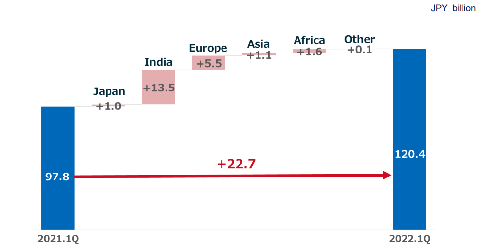 日本:關(guān)西涂料在日本以汽車涂料和工業(yè)涂料為主。受芯片短缺影響,日本汽車產(chǎn)量低于2021年同期,同時工程機(jī)械和機(jī)械設(shè)備的涂料需求量持續(xù)下降,加之原材料采購價格的上漲,同時日本船舶業(yè)出現(xiàn)市場回升的情況。關(guān)西涂料的銷售額增長主要來自于產(chǎn)品提價,利潤增長很大程度上來自匯率溢價所帶來的收益。