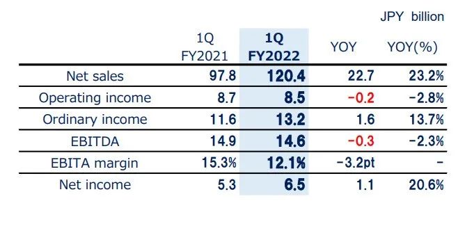8月5日消息,關(guān)西涂料(KANSAI PAINT)發(fā)布2022年第一季度財報。盡管面臨原材料大幅的上漲,但關(guān)西涂料依舊在第一季度保持了23.2%的銷售收入增長速度。第一季度,關(guān)西涂料完成銷售收入1204億日元(約60.22億人民幣,以下簡稱“元”);經(jīng)營利潤收得85億日元(約4.24億元),同比下降2.8%;經(jīng)營性息稅折舊攤銷前利潤(EBITDA)132億日元(約6.6億元),同比增長13.7%;同比增長13.7%,歸母凈利潤為64.50億日元(約3.23億元),實現(xiàn)同比增長20.6%。