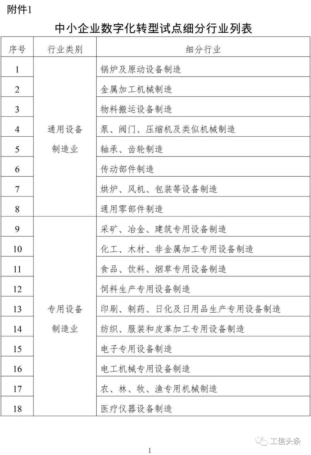 1.聚焦重點方向。將 制造業關鍵領域和產業鏈關鍵環節的中小企業作為數字化轉型試點的重點方向,對其中數字化轉型需求迫切、發展潛力巨大、經濟社會效益明顯的中小企業加大支持力度。重點向醫藥和化學制造、通用和專用設備制造、汽車零部件及配件制造、運輸設備制造、電氣機械和器材制造、計算機和通訊電子等行業中小企業傾斜。由各地結合發展實際、發展階段和發展需求按照細分行業列表申報服務平臺和對應改造的“小燈塔”企業名單。