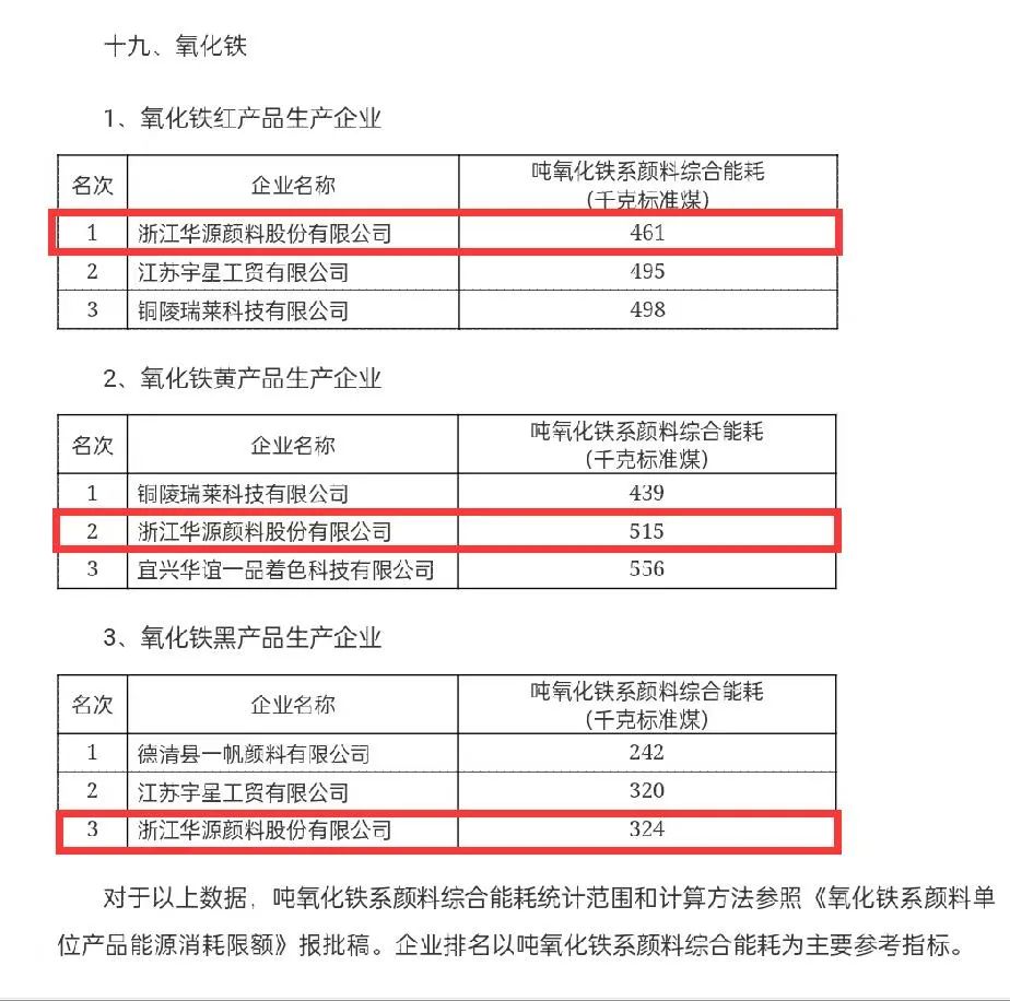 榮譽|華源顏料連續(xù)多年蟬聯(lián)行業(yè)能效“領跑者”