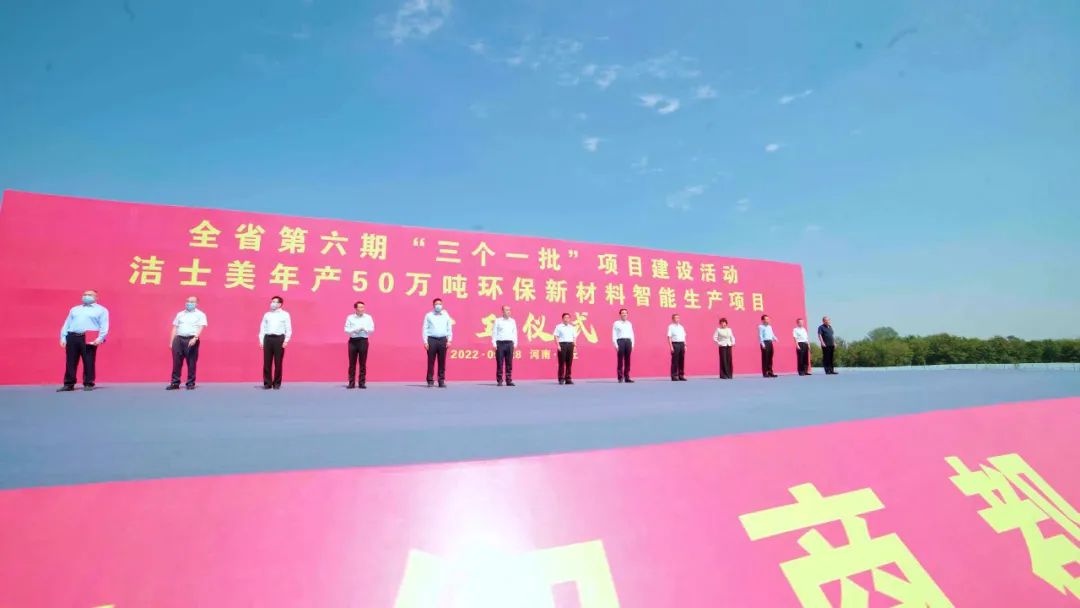 9月28日上午,河南省第六期“三個(gè)一批”項(xiàng)目建設(shè)活動(dòng)集中開工儀式在潔士美環(huán)保新材料智能生產(chǎn)項(xiàng)目現(xiàn)場(chǎng)舉行。