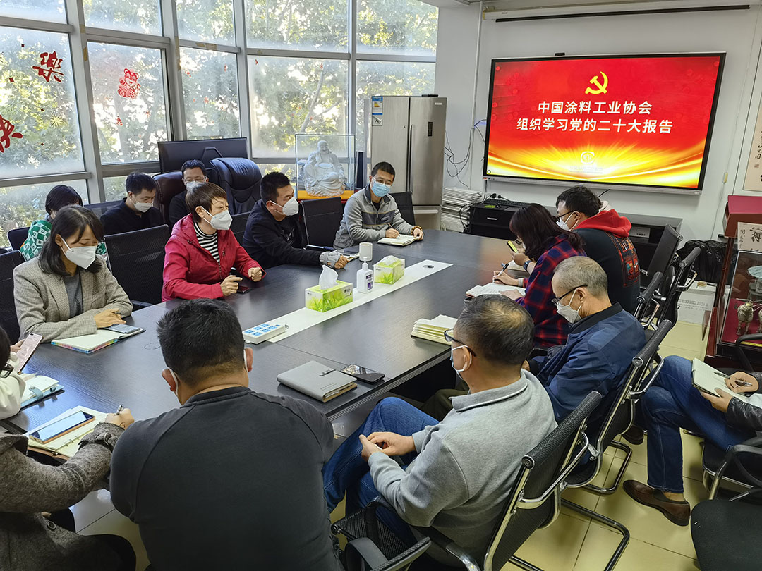 10月17日下午,中國涂料工業協會組織集體學習,圍繞習近平同志在中國共產黨第二十次全國代表大會上所作的報告深入開展學習討論。中國涂料工業協會黨支部書記、會長孫蓮英同志主持會議并講話。
