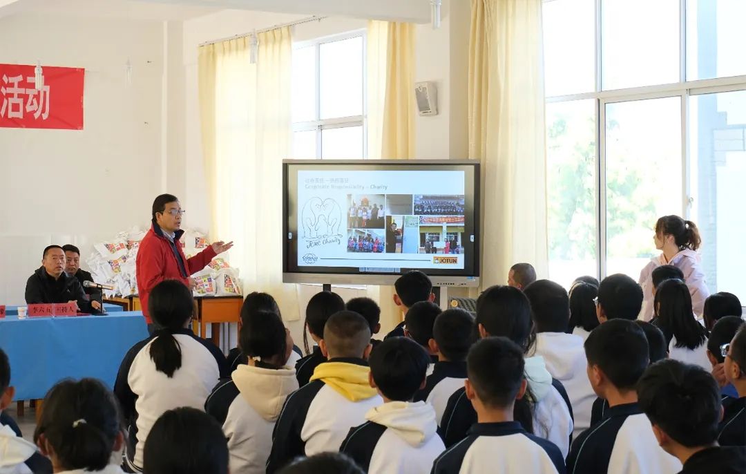 中遠佐敦副總經理楊杰對受助學生們表達了佐敦對孩子們的期待,希望孩子們要聽從學校和老師的教導,心懷感恩之心,以優異的成績作為回報,成為對社會有貢獻的人。如果生活上有什么困難,可以通過學校向佐敦反應,佐敦將盡最大努力為孩子們提供支持與幫助。