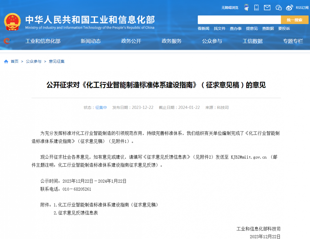 為貫徹落實(shí)《中共中央關(guān)于制定國民經(jīng)濟(jì)和社會(huì)發(fā)展第十四個(gè)五年規(guī)劃和二〇三五年遠(yuǎn)景目標(biāo)的建議》的相關(guān)決策部署,深入實(shí)施智能制造工程,搶抓新一輪科技革命機(jī)遇,充分發(fā)揮標(biāo)準(zhǔn)在化工行業(yè)智能制造進(jìn)程中的支撐和引領(lǐng)作用,明確當(dāng)前和未來一段時(shí)間化工行業(yè)智能制造標(biāo)準(zhǔn)化工作方向,促進(jìn)化工行業(yè)與新一代信息技術(shù)在更廣范圍、更深程度、更高水平上實(shí)現(xiàn)融合發(fā)展,推動(dòng)化工行業(yè)由傳統(tǒng)生產(chǎn)方式向智能制造轉(zhuǎn)型升級(jí),工業(yè)和信息化部依據(jù)《國家智能制造標(biāo)準(zhǔn)體系建設(shè)指南(2021版)》,組織制定了《化工行業(yè)智能制造標(biāo)準(zhǔn)體系建設(shè)指南》。其中,中國涂料工業(yè)協(xié)會(huì)參與編寫了涂料、顏料行業(yè)智能制造相關(guān)部分。現(xiàn)公開征求社會(huì)各界意見。公示時(shí)間為2023年12月22日-2024年1月22日