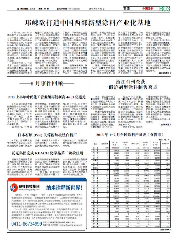 中國涂料報 2013年9月10日星期二