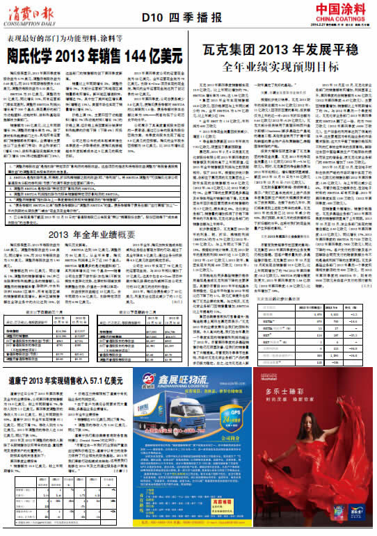 中國涂料報 2014年2月27日 星期四